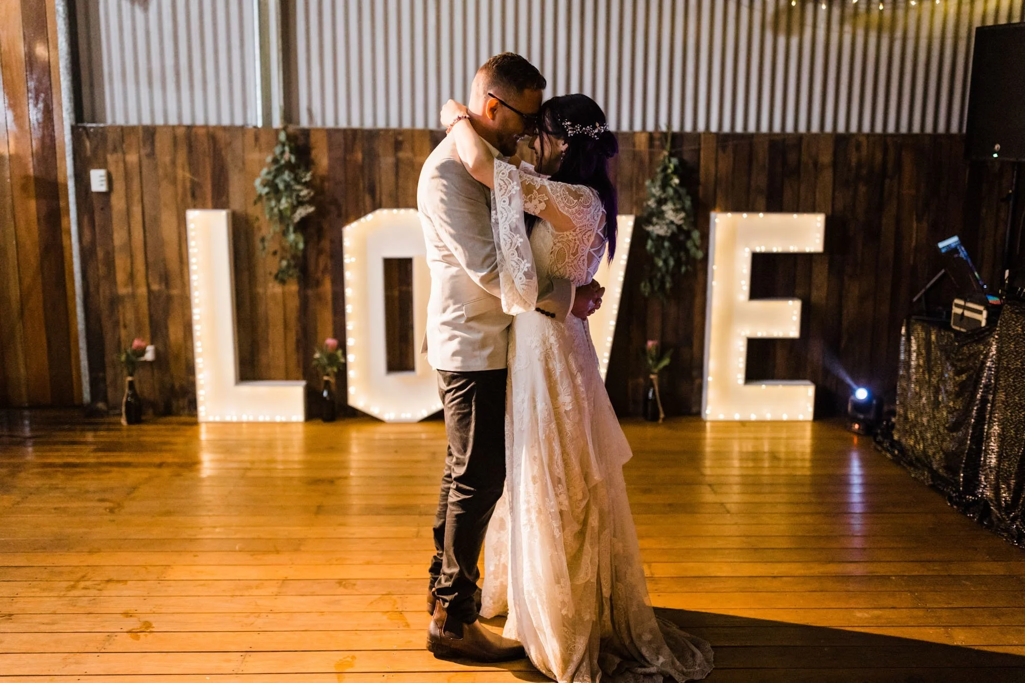 The shed at Bidja Estate came into its own on a rainy day. With the ceremony moved inside, it actually felt more intimate — everyone close together, the rain on the roof providing its own kind of atmosphere. The light was soft and even, which any photographer will tell you is genuinely ideal.